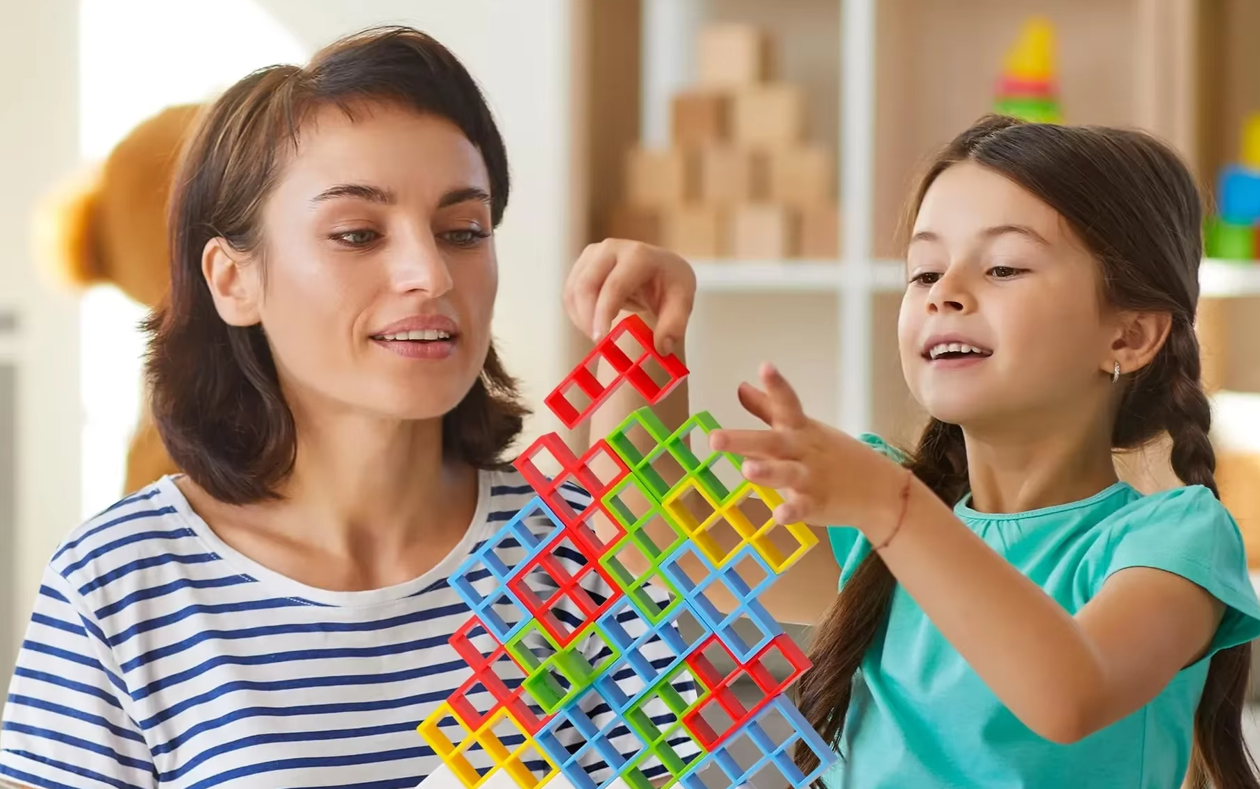 Perfeito para momentos em família ou entre amigos, o jogo estimula a concentração, o pensamento lógico e o controle motor fino. Cada partida é única, exigindo atenção e precisão para manter a torre em pé enquanto novas peças são adicionadas.
