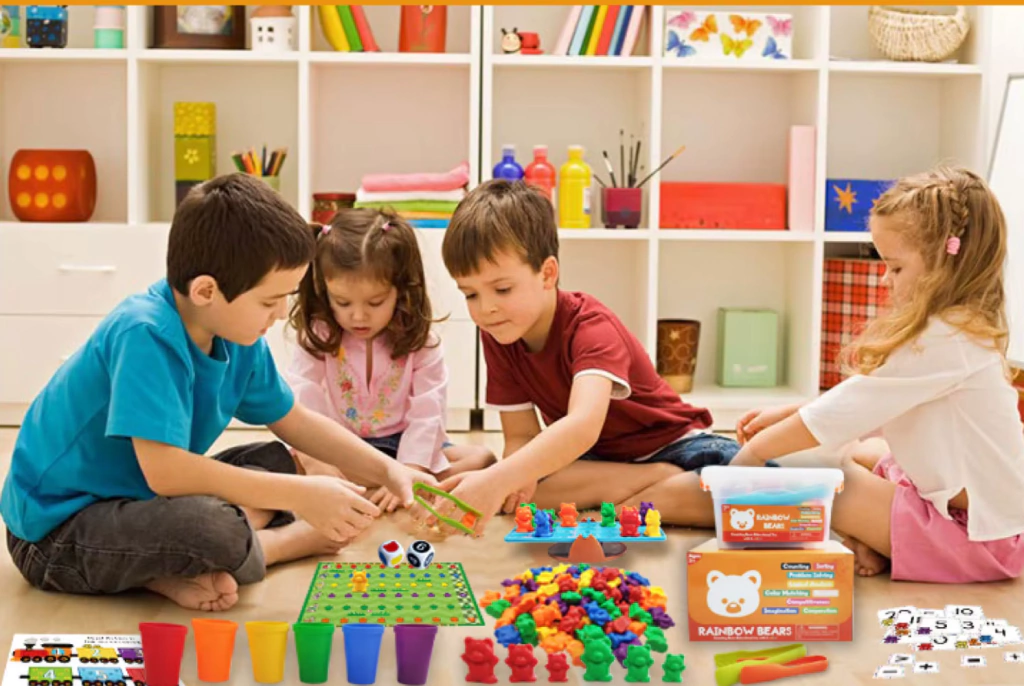 Desenvolve habilidades motoras finas: o manuseio dos ursos, copos e pinças estimula a coordenação e o controle dos movimentos.